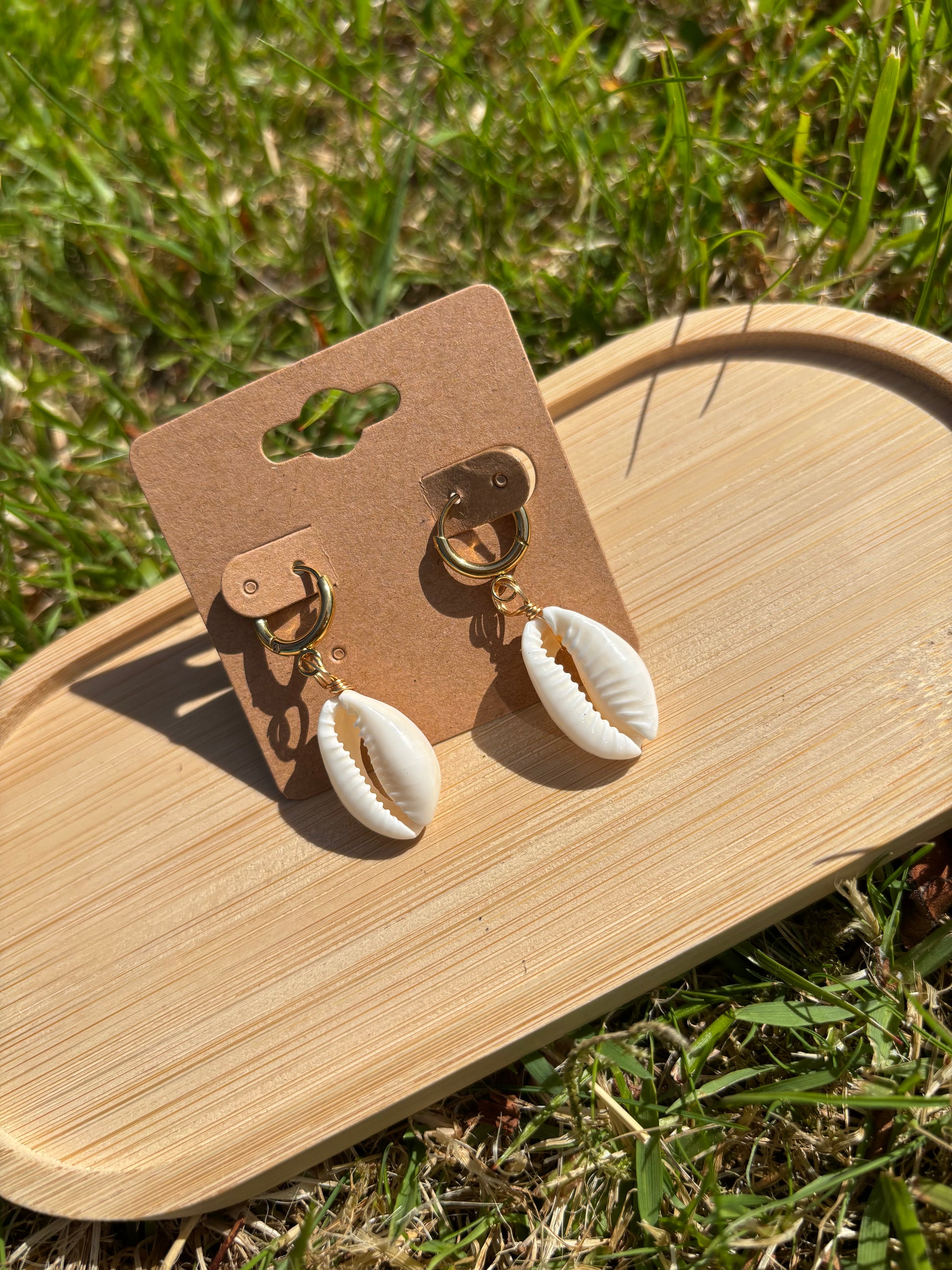 304 stainless steel, 18k gold plated huge hoops with a pukka shell charm