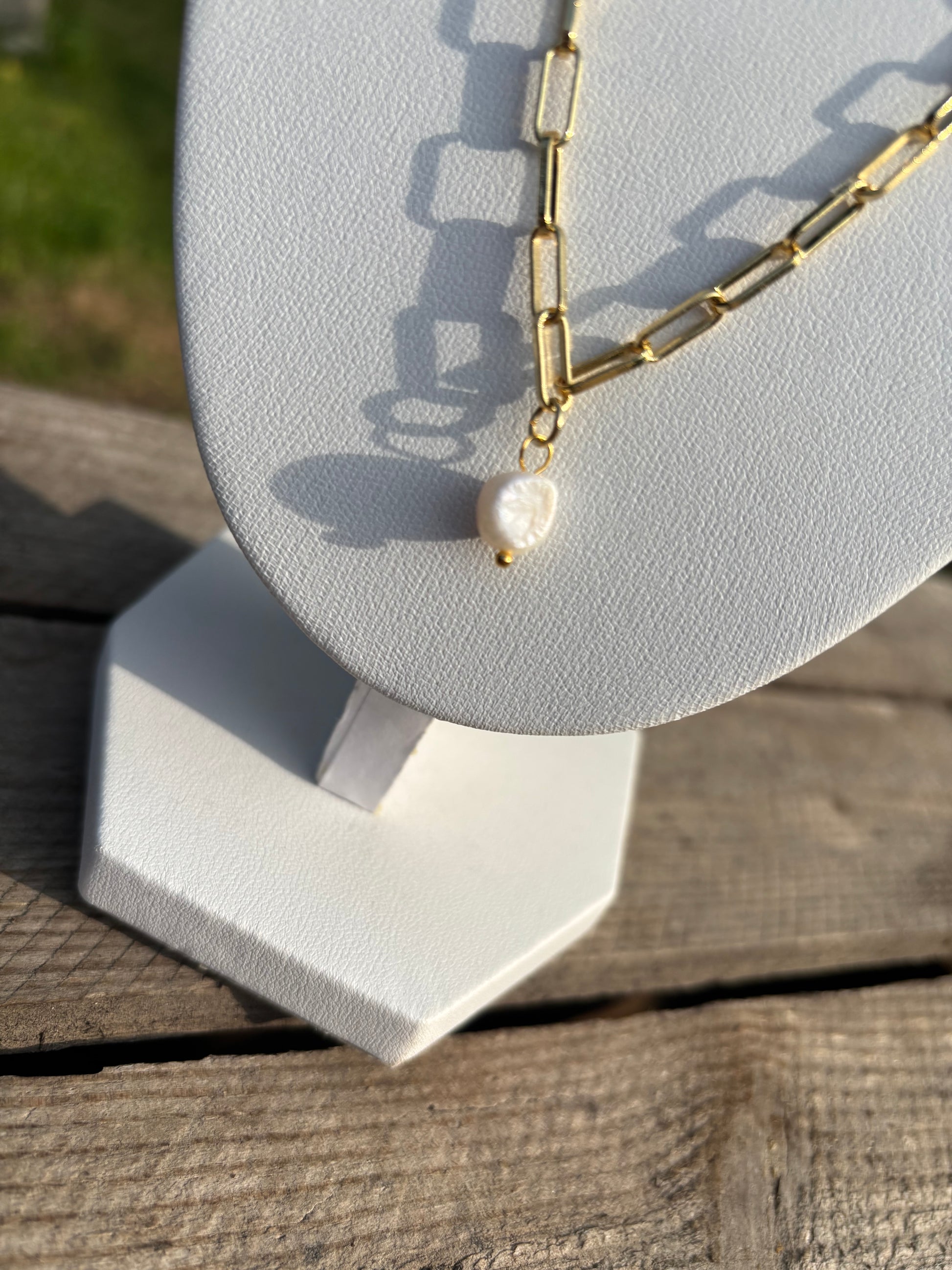 Freshwater Pearl Gold Paperclip Necklace